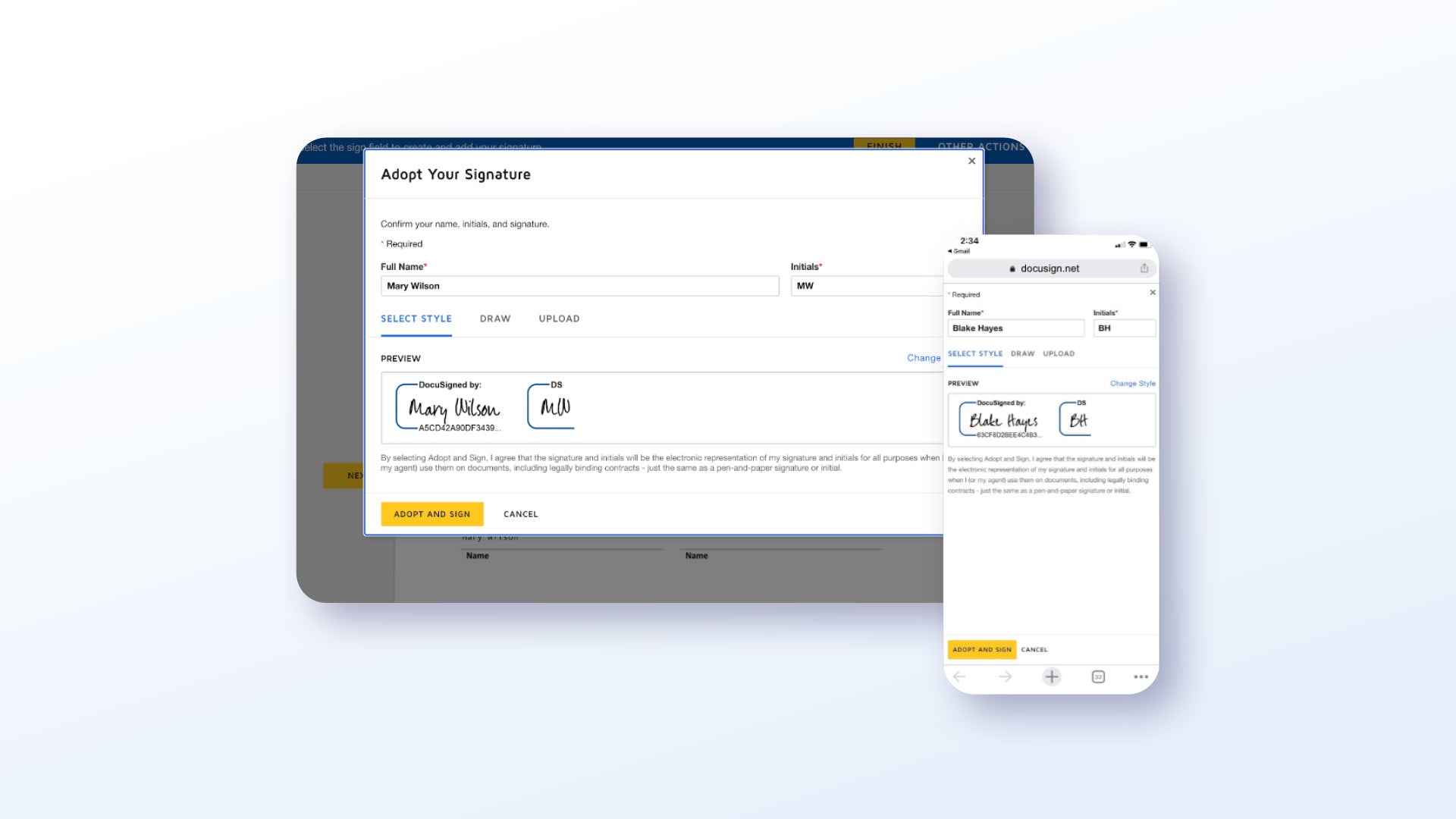 E-signature moves your modern business forward. Because you can easily do your work remotely. Sales contracts, offer letters, account openings and invoices can be signed and sent at any time and from virtually anywhere with DocuSign.And because contractual collaboration doesn't belong in emails, documents, or chats, DocuSign stores and manages your most important documents collectively in one place so you can focus on what's important to you.