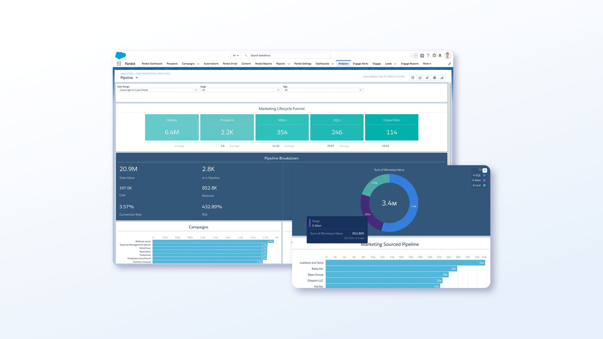 Mit der kompletten Suite von Tools für die B2B-Marketingautomatisierung können Sie sich auf völlig neue Weise mit Ihren Kunden vernetzen, mehr hochwertige Leads generieren und dem Vertrieb helfen, mehr Auftragsabschlüsse zu erzielen.